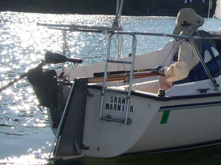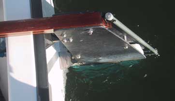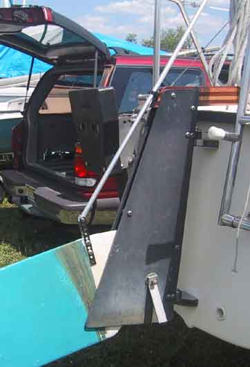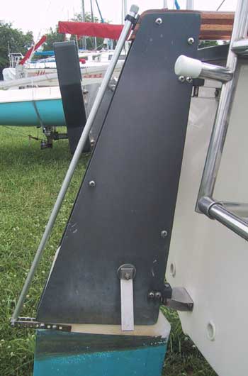 Kevin Pearce made a device to help him raise and lower his P-18 rudder blade -- without leaning over the transom.