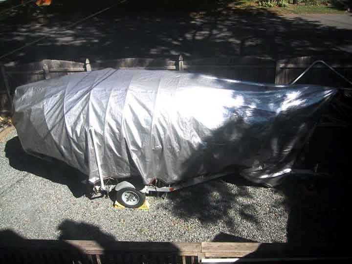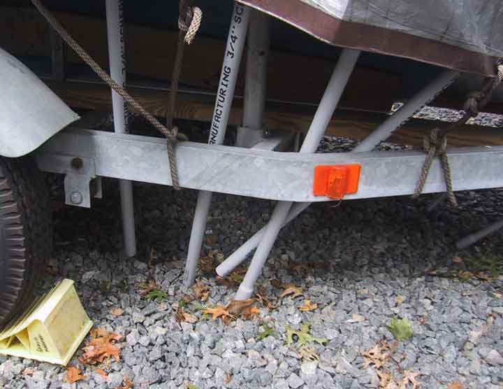 The free ends of the hoops are just stuck inside the trailer frame. So far they're held only by friction, no securing. Although, the cover is tied to the trailer frame and that would help to hold everything down and keep the hoops from popping out.
